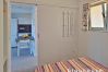 Dispone de dos dormitorios, ambos con una cama de matrimonio y uno de ellos con ventanal exterior que da acceso a la terraza. Entrando al alojamiento se encuentra un baño completo con ducha, y al final del pasillo la cocina, equipada con placa de inducción, cafetera Nespresso, tostadora, lavavajillas, nevera/congelador, horno, vajilla, cubertería y utensilios varios; salón comedor con un sofá-cama y acceso directo a la amplia terraza, totalmente equipada con muebles de jardín.